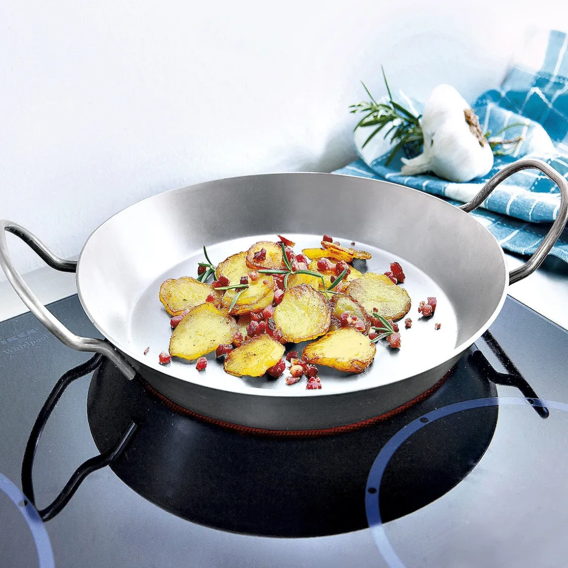 Und sie ist heute noch so gut wie damals: Die unverwüstliche Eisenpfanne! Diese hier ist besonders groß und eignet sich zum scharfen An- und Durchbraten z. B. von Steaks, Braten oder auch Röstkartoffeln. Alles behält seinen unverfälschten Geschmack. Für Elektro-, Gas-, Induktions-, Glaskeramik- und Halogen-Herde sowie für den Backofen geeignet!