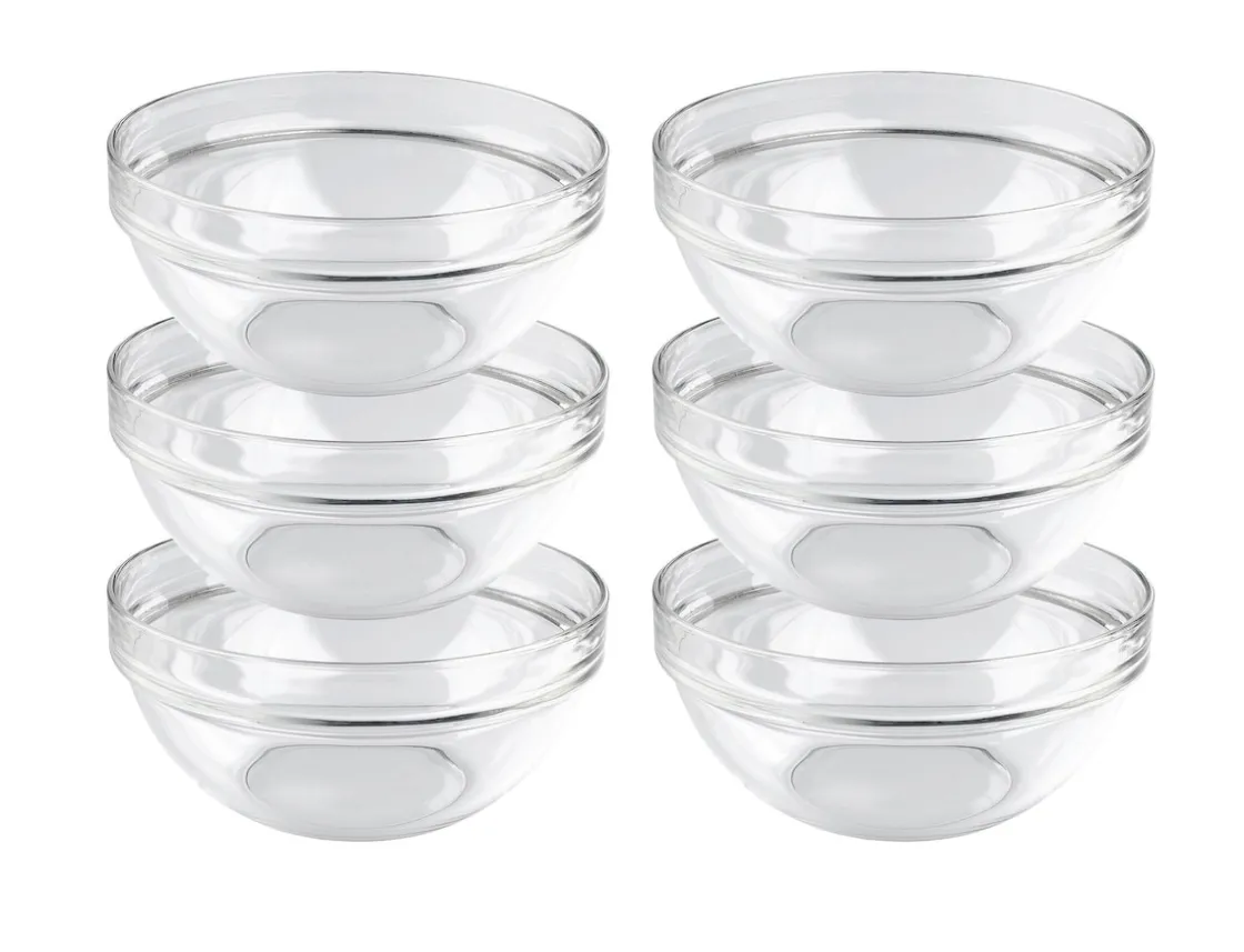 Dieses Set besteht aus 6 Schüsseln à 17 Zentimeter.