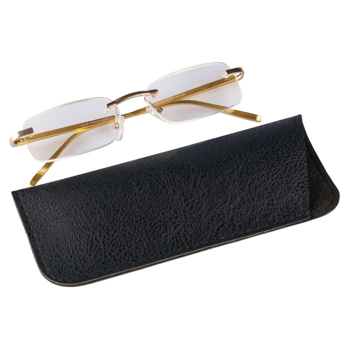 1 schicke Lesebrille in je 4 Stärken. Ohne Fassung – leicht und topmodisch. Das passende Steck-Etui gibt’s gratis dazu!