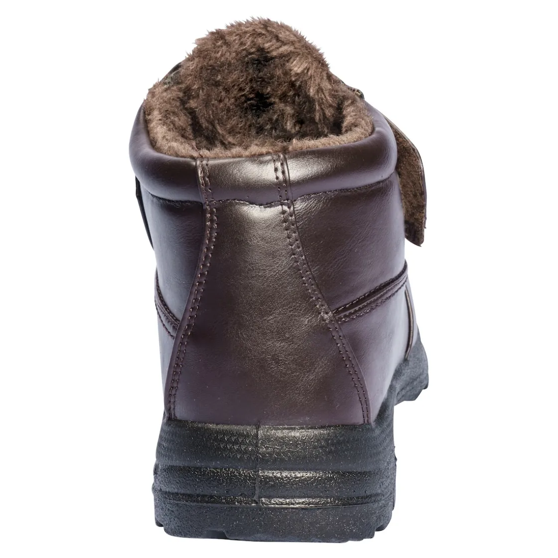 Bei diesen Winterstiefeln ist Wohlfühlen angesagt! Und das fängt schon beim Anziehen an. Denn der praktische Klettverschluss erlaubt es, mühelos in die Schuhe hineinzuschlüpfen und die Weite individuell an die eigene Fußbreite anzupassen. Außen zeigen sich die Winterstiefel in hochwertigem braunen Lederimitat. Innen sind sie komplett mit Plüschfutter ausgestattet, das die Füße auch bei niedrigen Temperaturen schön warm hält. Trotzdem sind die Stiefel angenehm leicht zu tragen. Die rutschhemmende Profil-Laufsohle sorgt für einen sicheren Halt und leistet einen weiteren Beitrag zu dem hohen Tragekomfort, der diese Schuhe auszeichnet.