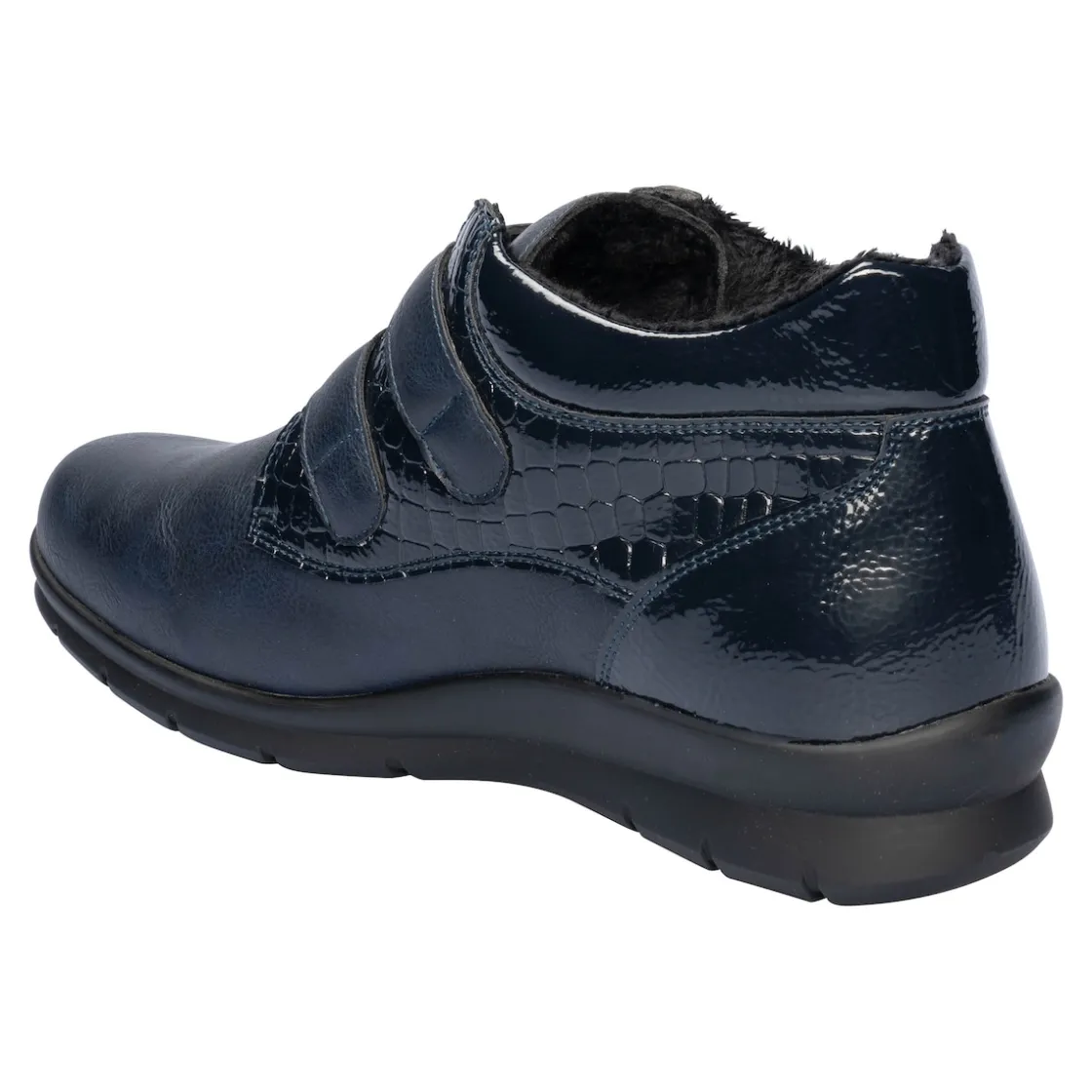 Mit der warm gefütterten Komfort-Stiefelette „Helga“ in Lack- und Leder-Optik gehen Sie trendstark durch die kühle Jahreszeit: Gleich 2 Klettverschlüsse sorgen für einen leichten Ein- und Ausstieg sowie für eine optimale Anpassung an den Fuß. Mit weicher Decksohle und rutschhemmender Laufsohle.