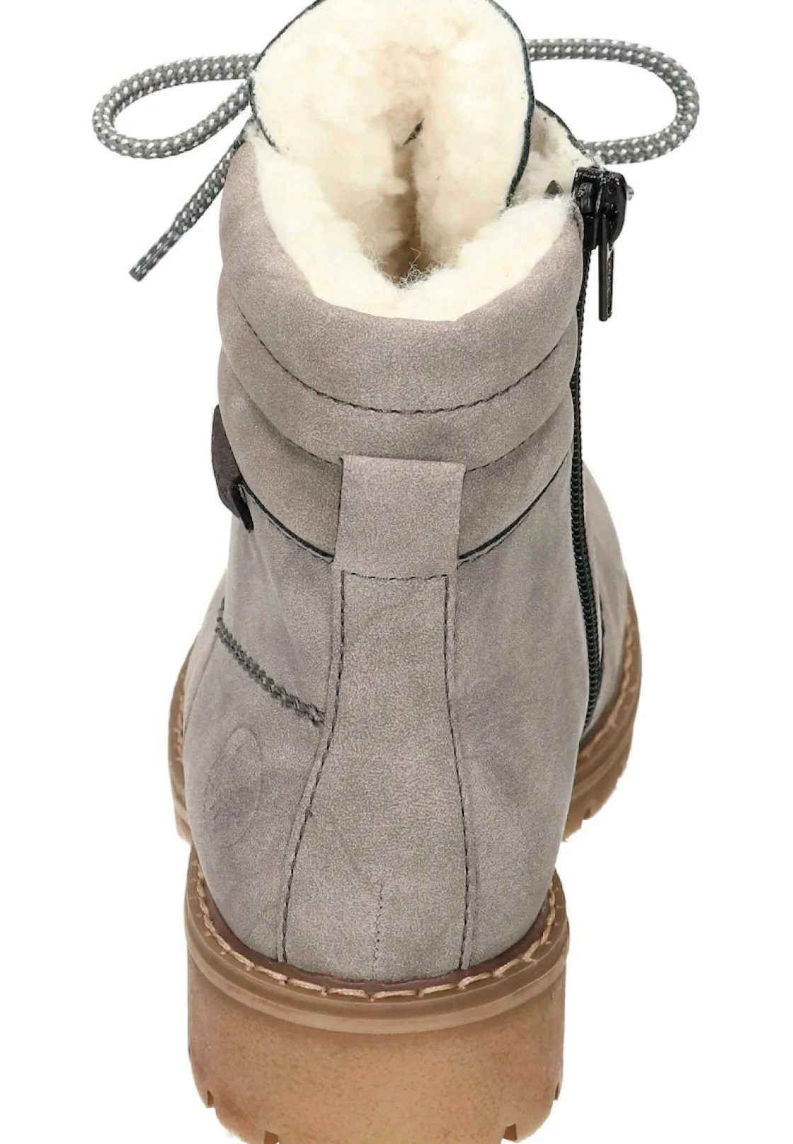 Bei diesem Produkt handelt es sich um einen Schuh aus der Kategorie Schnürstiefeletten für Damen. Als Obermaterial wurde Synthetik verwendet und im inneren Bereich des Schuhs wurde Warmfutter und gepolsterte Textildecksohle verarbeitet. Die Schuhweite dieses Artikels ist Weite F 1/2 und somit schmal. Als Verschlussart wurde Reißverschluss gewählt und die TR-Sohle rundet das Produkt ab. Der Artikel fällt normal aus, bitte die gewohnte Größe bestellen. – Schuhweite: Weite F 1/2 –