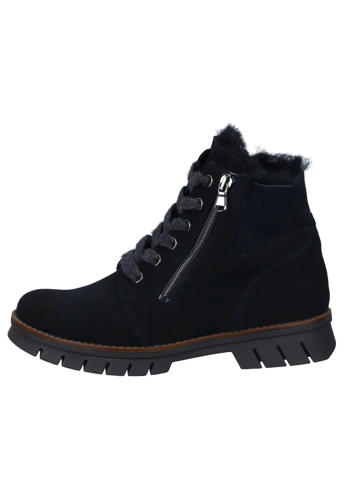 Bei diesem Produkt handelt es sich um einen Schuh aus der Kategorie Klassische Stiefeletten für Damen. Als Obermaterial wurde Nubukleder verwendet und im inneren Bereich des Schuhs wurde Lammfell-Futter und herausnehmbare Filzdecksohle verarbeitet. Die Schuhweite dieses Artikels ist Weite H und somit weit. Als Verschlussart wurde Reißverschluss gewählt und die PVC-Sohle rundet das Produkt ab. Der Artikel fällt normal aus, bitte die gewohnte Größe bestellen. – Schuhweite: Weite H –