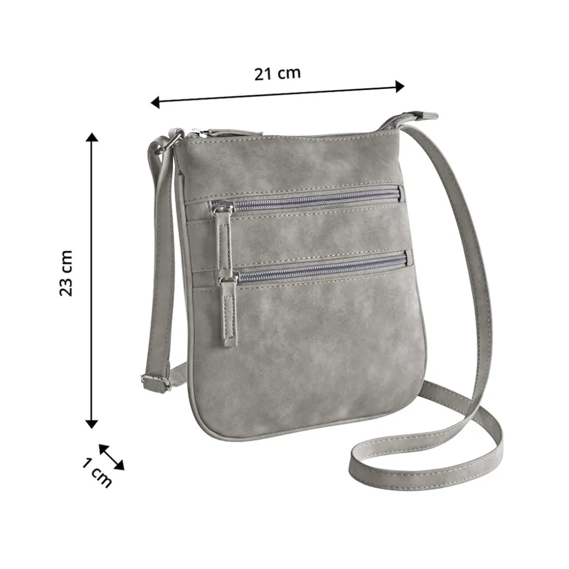Neben der praktischen Funktionalität überzeugt Ella auch optisch. Die Kunstledertasche in Wildleder-Optik ist in verschiedenen Farben erhältlich und passt zu einer Vielzahl von Outfits. Mit einem individuell verstellbaren Trageriemen (60-130 cm) lässt sie sich bequem an Ihre Körpergröße und bevorzugte Tragehöhe anpassen.