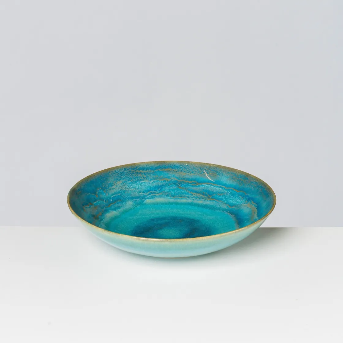 Wohl in jeder Alpenregion gibt es ihn: Den tiefen See, um den sich Legenden ranken. Der zum Baden meist zu kalt ist. Der Ruhe ausstrahlt und zum Verweilen einlädt. Die facettenreiche Kollektion Tiefer See mit ihren ineinanderfließenden Farbnuancen ist eine Hommage an diesen ganz besonderen Ort. An ihren Rändern spiegeln sich die umgebenden Berge auf einer sich kräuselnden Wasseroberfläche. Ihre beinahe dreidimensional erscheinende Mitte bringt die Kraft der Tiefe und Stille auf den Esstisch.