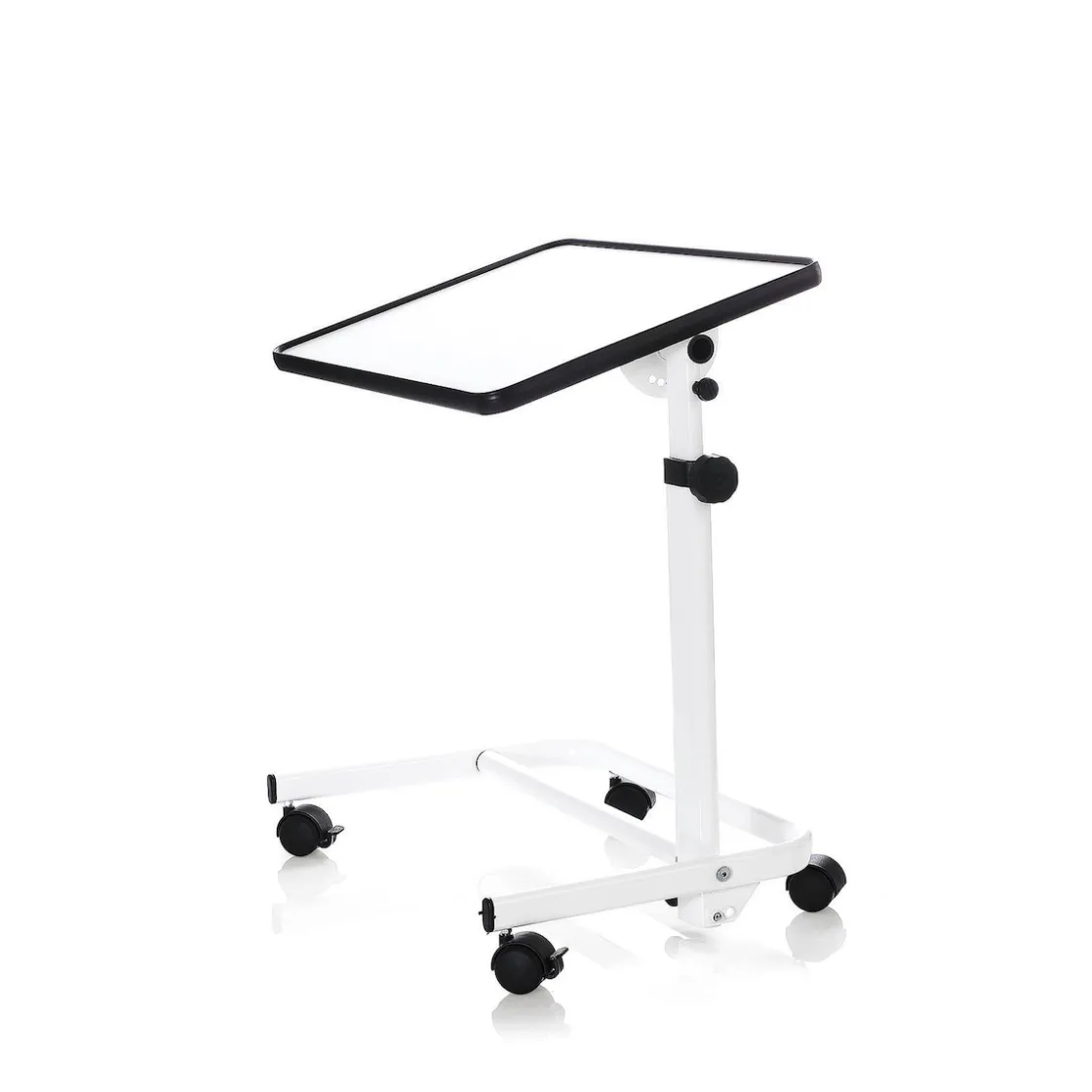 Höhenverstellbarer Beistelltisch mit neigbarer Tischplatte auf Rollen