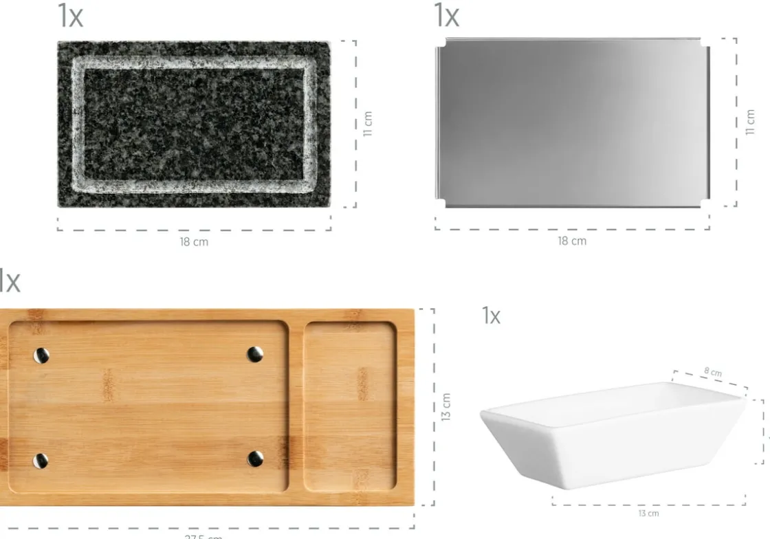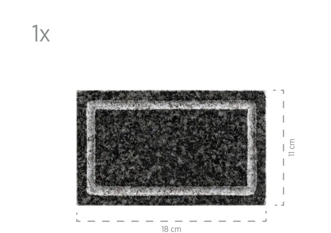 Das Heiße Stein Set besteht aus einem Granitstein, einer Platte sowie einem Hitzeschutz zwischen Stein und Platte.