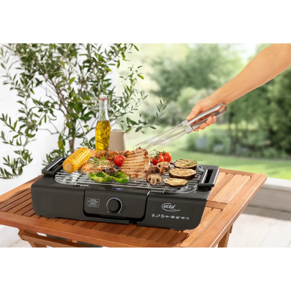 Entdecken Sie eine neue Dimension des Grillens, egal ob Sie drinnen in Ihrer gemütlichen Küche oder draußen auf Ihrer Terrasse sind. Mit unserem Tischgrill „Deluxe“ wird Grillen so einfach wie nie zuvor. Dank seiner rauchlosen Technologie können Sie saftige Steaks, knackige Gemüsespieße und vieles mehr zubereiten, ohne sich Gedanken über lästigen Rauch machen zu müssen.