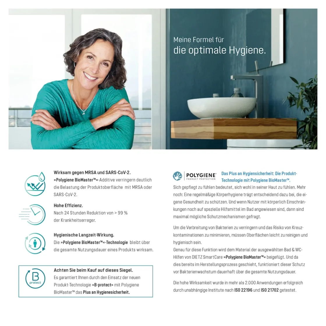 Anatomisch geformter Sitz, für alle üblichen WC-Becken. Großer Hygieneausschnitt vorne und hinten. Oberfläche mit Nanotechnologie: wasserabweisend, extrem hart und kratzfest. Eingebettete Silber-Ionen schützen vor Keimen. Leichte Montage ohne Werkzeug.