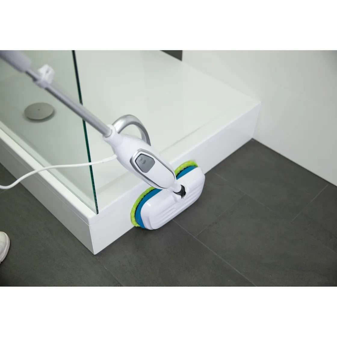 Der Dampfreiniger bietet hygienische Sauberkeit im ganzen Haus. Mit 3-Stufen-Dampfautomatik reinigt er schonend oder kraftvoll jeden Boden. Keim- und bakterienfreie Reinigung bei 0% Chemie. Der Doppelmop-Kopf schrubbt und poliert mit 140 Umdrehungen pro Minute. Vielseitig einsetzbar auch als Handdampfreiniger mit praktischen Aufsätzen. Strahlend saubere Böden ohne Schadstoffe!