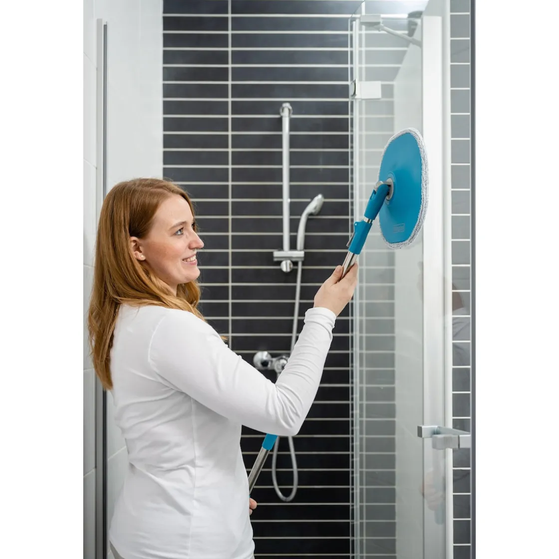 Das Wischmop-Set mit Frischwasser-Reinigung bringt Innovation in die Bodenreinigung. Das intelligente Doppelkammer-System trennt Schmutz- und sauberes Wasser, für immer frischen Mopp-Einsatz. Drücken Sie einfach den Mopp, um Schmutzwasser abzugeben und frisches Wasser aufzusprühen. Die 360° drehbare Reinigungsbürste entfernt mühelos Haare und Schmutz. Die höhenverstellbare Teleskopstange ermöglicht die Reinigung aller Böden und Oberflächen. Sparsam und effizient: Nur 2,3 Liter Wasser für bis zu 100m2 Fläche. Inklusive 2 Reinigungskonzentrate mit jeweils 60 ml für Parkett und Fliesen & Parkett.