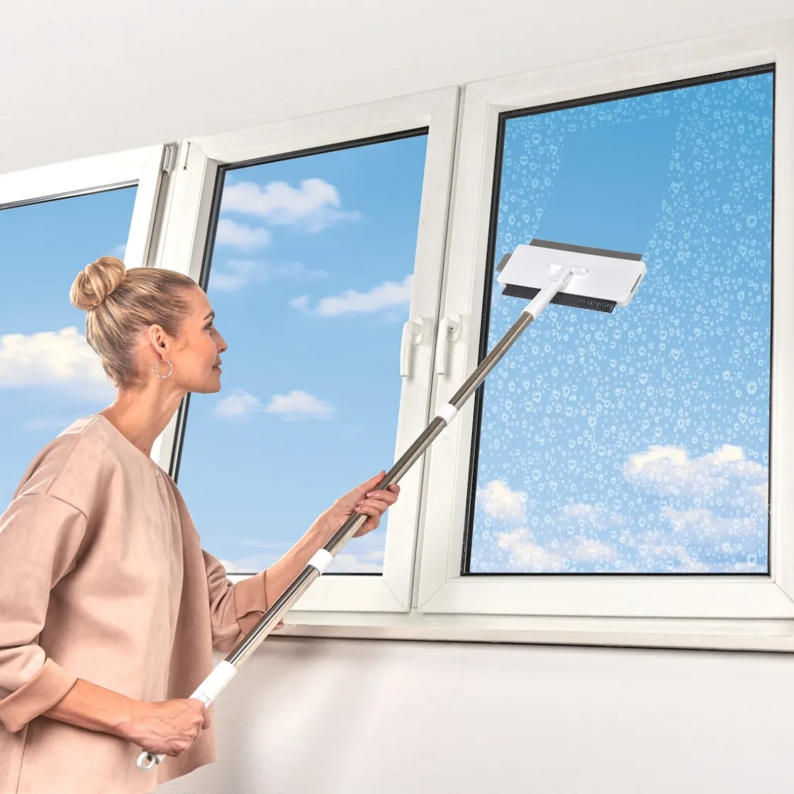 - Wischer mit Borsten zum Kehren und Abziehlippe für Fenster