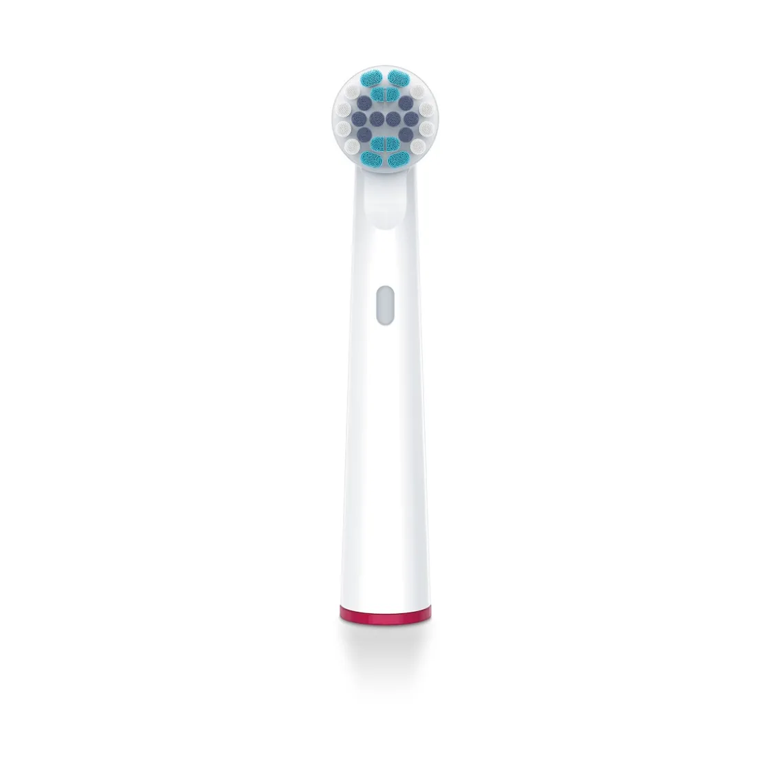 Unsere innovativen Bürstenköpfe, sowohl Sensitiv als auch Clean, wurden entwickelt, um Ihre Zähne und Ihr Zahnfleisch zu schützen. Mit zwei unterschiedlichen Borstenlängen sorgen sie für eine gründliche Reinigung und optimale Mundhygiene. Die praktische Schutzkappe gewährleistet Hygiene auch unterwegs. Dank der verschiedenen Farbringe können Sie Ihre Bürstenköpfe leicht unterscheiden.