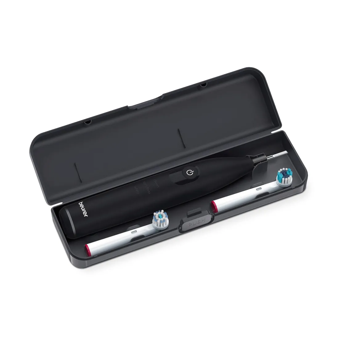 Die TB 50 bietet Ihnen ein Höchstmaß an Komfort und Effizienz, einschließlich drei individueller Reinigungsprogramme: Clean, Sensitive und White. Die integrierte LED-Ladeanzeige ermöglicht es Ihnen, stets den Ladestatus Ihres Akkus im Blick zu behalten. Erleben Sie eine neue Dimension der Zahnpflege mit einem leistungsstarken Akku, der eine Laufzeit von bis zu 45 Tagen bietet, sowie einem integrierten Andrucksensor, der Ihre Zähne und Ihr Zahnfleisch schützt. Zusätzlich zur Zahnbürste erhalten Sie eine induktive Ladestation, ein USB-Ladekabel mit Adapter und einen Clean-Bürstenkopf. Die mitgelieferte Reise- und Aufbewahrungsbox stellt sicher, dass Sie auch unterwegs stets bestens ausgestattet sind.